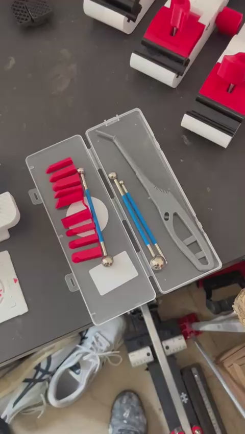 4 Edelstahl-Glättstifte mit kugelförmigen Spitzen in verschiedenen Größen für alle Bereiche, 8 rote Profile für saubere und gleichmäßige Abschlüsse auch in Ecken sowie ein ergonomischer Multifunktionsschaber zum einfachen Entfernen von Überschüssen.Alles ist in einer stabilen, praktischen Hartbox verstaut 🧰