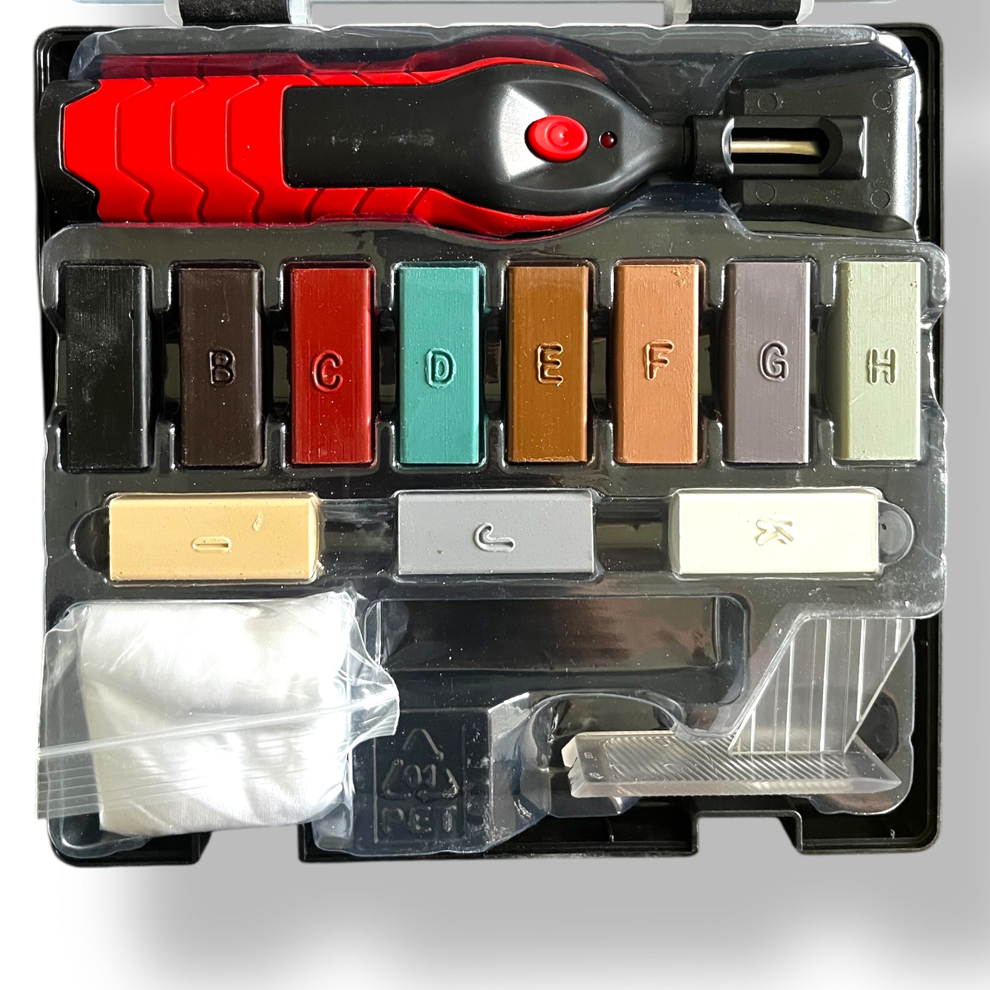Es enthält ein per USB wiederaufladbares Heißwerkzeug, mehrere farbige Wachsstifte zum Schmelzen, einen Finishing-Spachtel und ein Tuch. Das Ergebnis? Saubere, langlebige und nahezu unsichtbare Reparaturen ✅