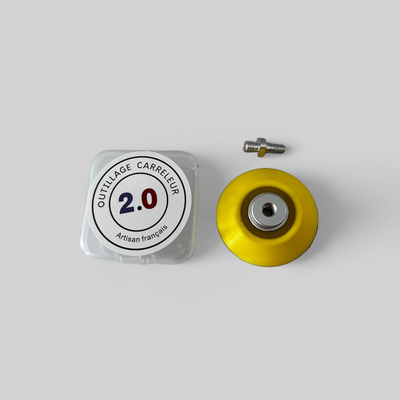 Este soporte de lijado amarillo de alta calidad, equipado con una varilla adaptadora, está diseñado para alojar sus discos de diamante o abrasivos de pequeño formato. Garantiza una excelente estabilidad y una sujeción óptima para acabados limpios y rápidos.